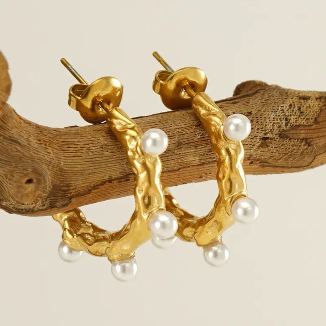 Elegant gold-plated stainless steel hoops adorned with delicate pearl studs, offering a timeless and refined style for any occasion.